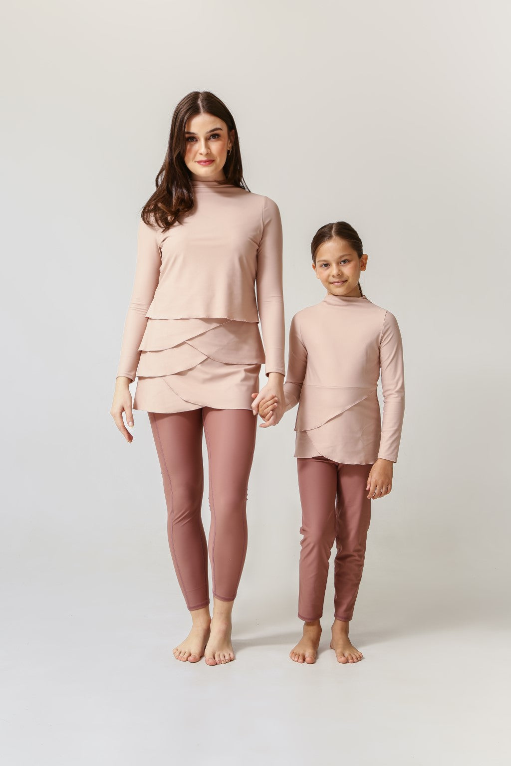 Just like our adult swimwear range, we want our daughters when growing up to associate swimwear with more than just a one-piece or a bikini. Remembering back to our own journeys through puberty and adolescence, we believe it is important to move away from the concept of a ‘beach body’ and all the associated pressures. Instead, our aim is to empower our daughters and yours, to know that they are beautiful, regardless of how much skin they choose to show or how they choose to dress at the beach or the pool.