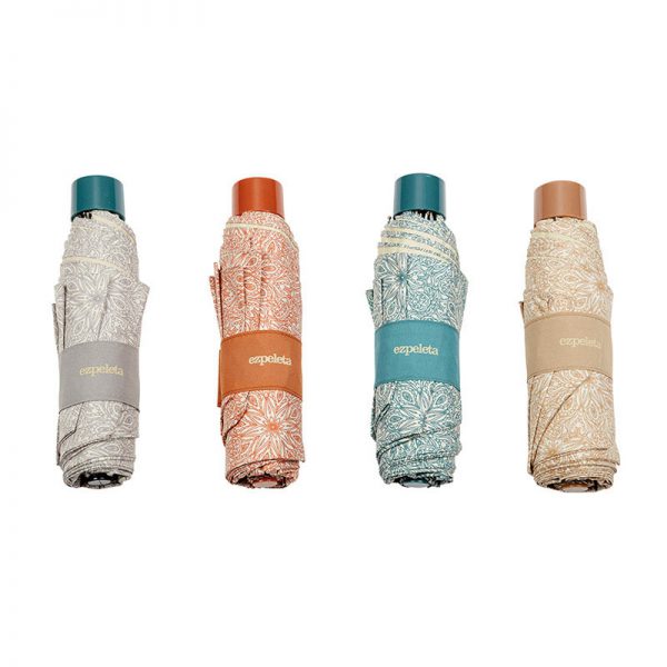 This is the Ezpeleta Patterned UV Compact sunshade, a new addition to our growing range of umbrellas and parasols that enable you to enjoy the sunshine whilst being protected from it’s harmful rays. This particular model has a UPF of 50+ and can be used on rainy days as well as sunny days. Not only that but this beautiful compact sun umbrella is also windproof ! Here at SunSibility we are really excited to be adding them to our range.