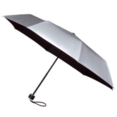 A good quality, manual opening, compact UV travel umbrella. The silver MiniMax has a simple 3 section telescopic black steel shaft and a clever 8 spoke bi-folding frame with chrome tips. As you slide the umbrella shaft closed, the spoke tips push up into the handle, and comes with a matching silver sleeve, keeping everything neat and tidy ready to pop in your handbag, glove box or suitcase. Superb for travel.