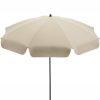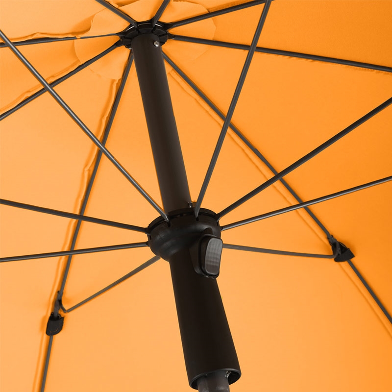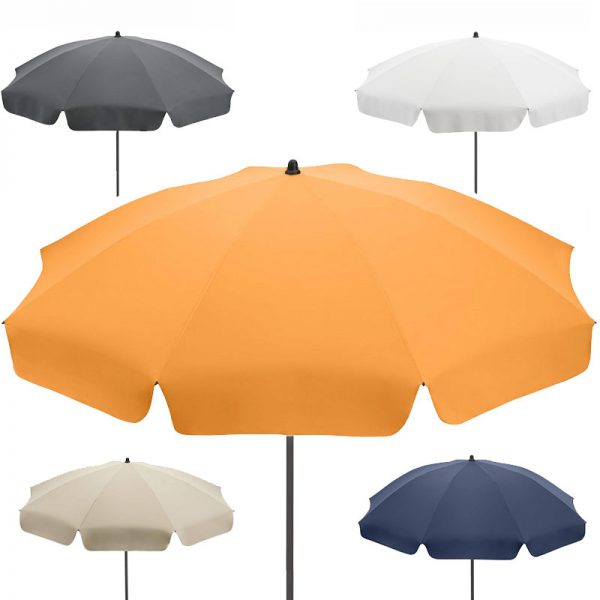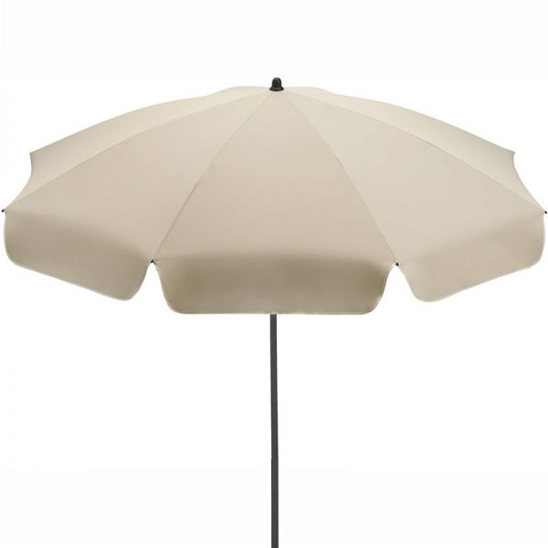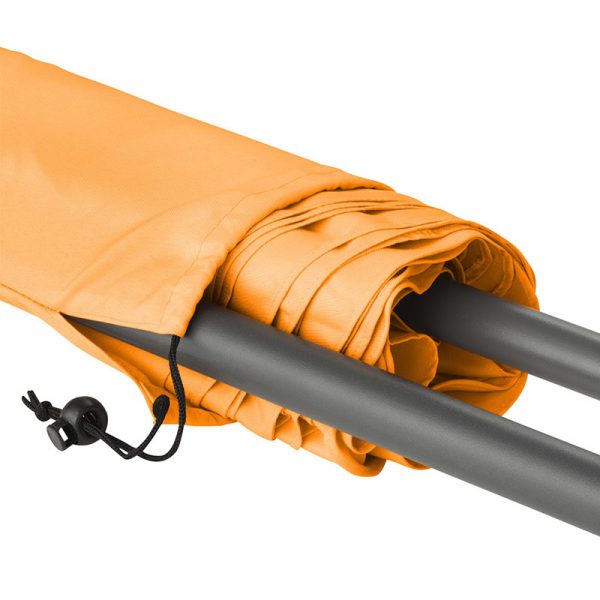 When fully closed the product is around 122 cm long. The lower shaft is approx. 120 cm long. The diameter of the two telescopic shaft pieces are 22 mm and 25 mm. Just to be clear, the lower pole is 25 mm. On the shaft there is a twist lock to enable height adjustment and to fix securely. The 165 cm diameter canopy is made from 100% polyester, has eight panels and an elegant valance. What’s more your UPF 50 beach umbrella is also easy to carry thanks to a convenient carrying case with shoulder strap and draw string closure. The net weight is 2050 g.