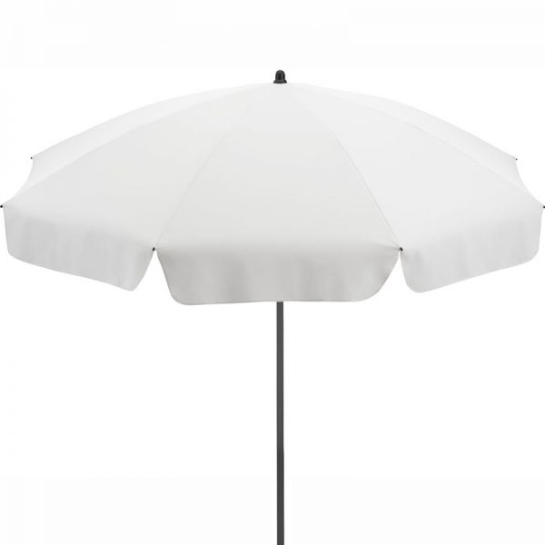 This stylish UV sunshade sports a titanium finish steel frame and adjustable tilt mechanism to angle the parasol canopy.