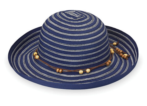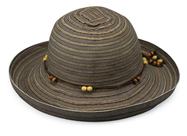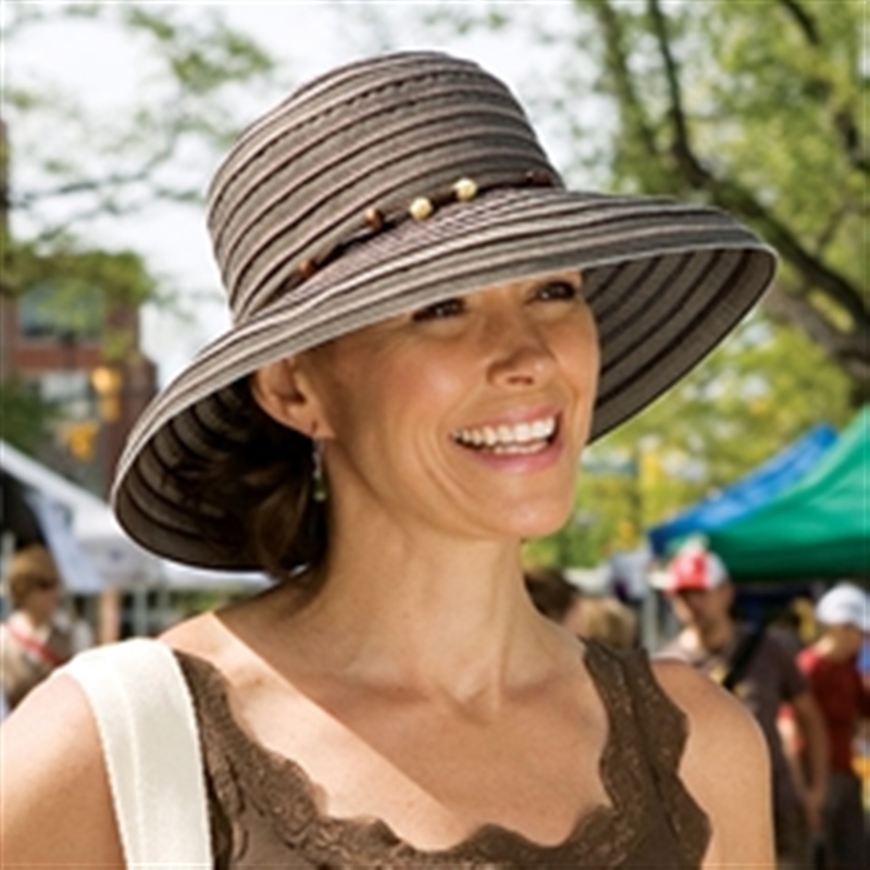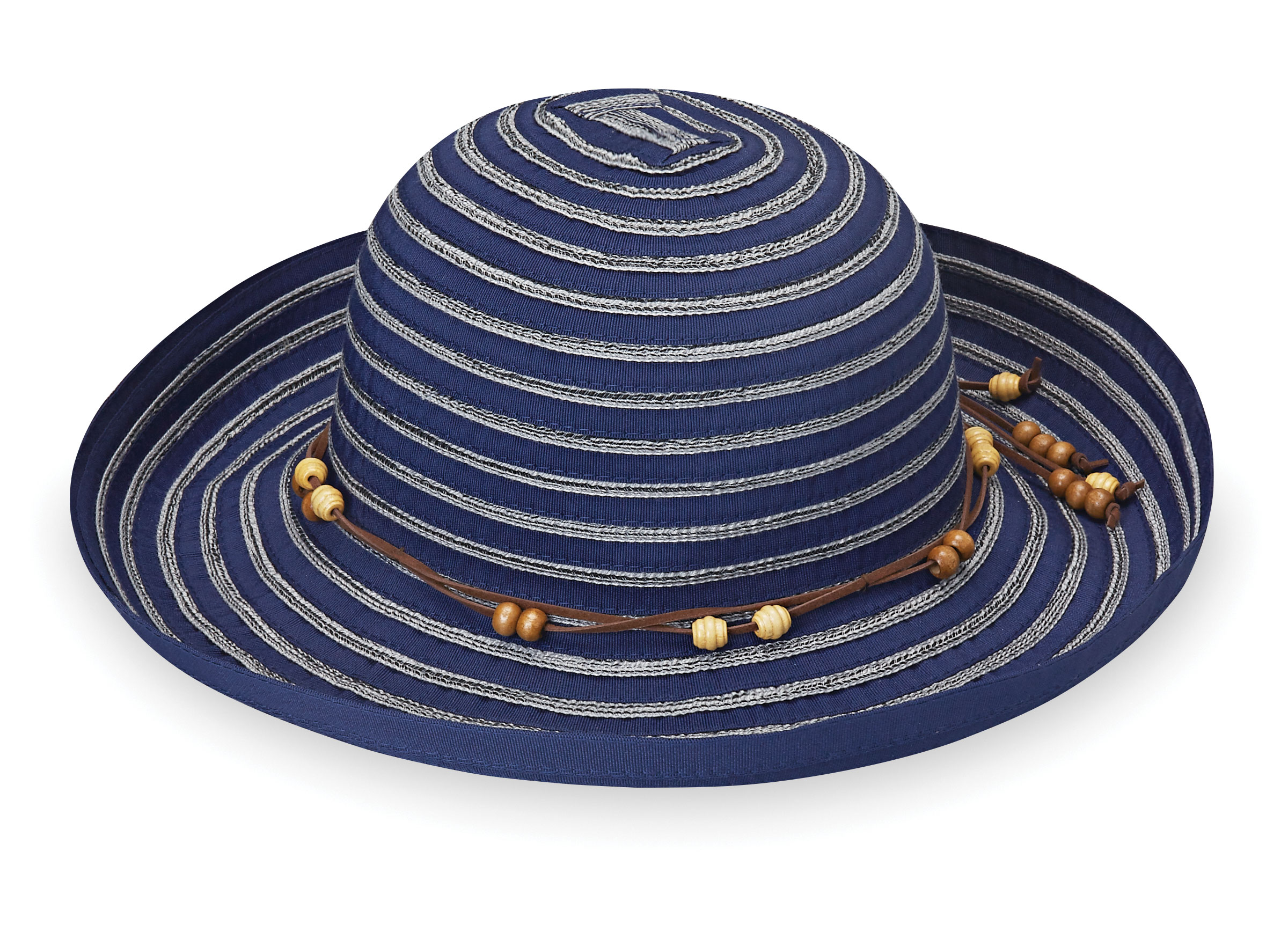 Customize the fit with the interior adjustable drawstring. 100% poly-ribbon. Hand wash cold. Extra Wide Brim Ladies Hat. Packable. Skin Cancer Foundation Recommended