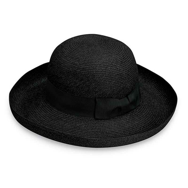 Georgia is a hat with dyed-to-match grosgrain ribbon around the crown dresses it up and an internal drawstring adjusts fit. 100% waxed paper braid exclusive of trim. Spot clean. This 4" brim will be turning heads! Extra Wide Brim Ladies Hat.