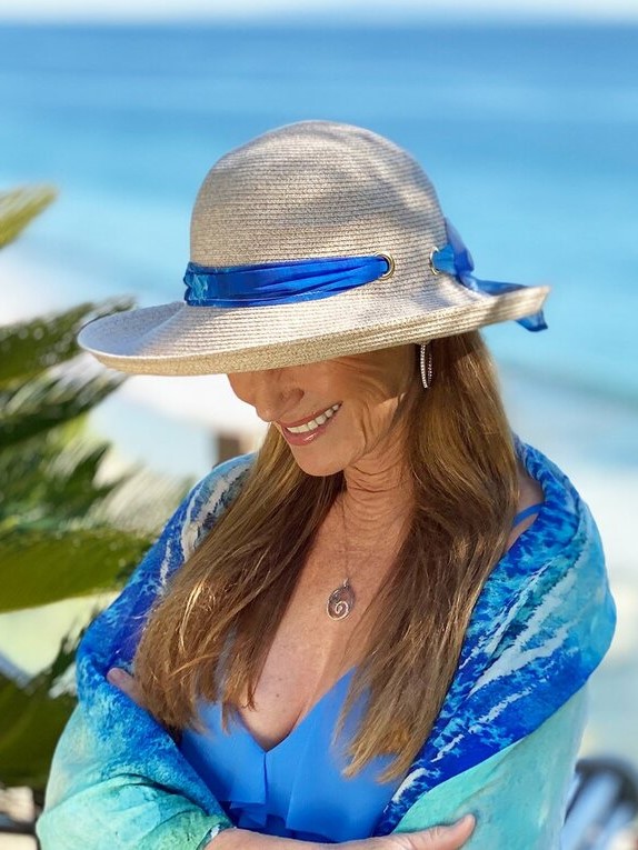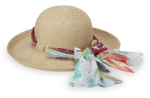 No two hats will look the same as the scarves are made from Jane’s exclusive artwork where variations of the artistic design will be represented throughout the scarf.