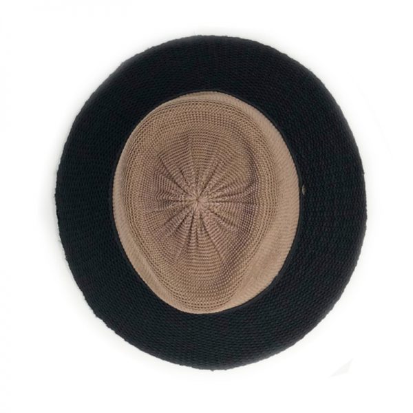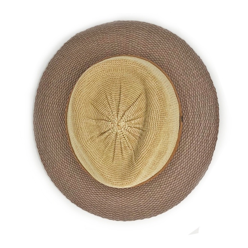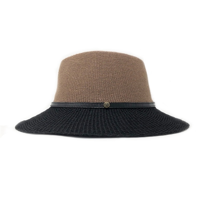 If one is good, then two must be better. Two complimentary colors blend sophistication and style. 3" brim, cotton lining and faux leather trim. Inner drawstring adjusts fit. Packing not recommended. 100% poly-straw. Spot clean.