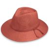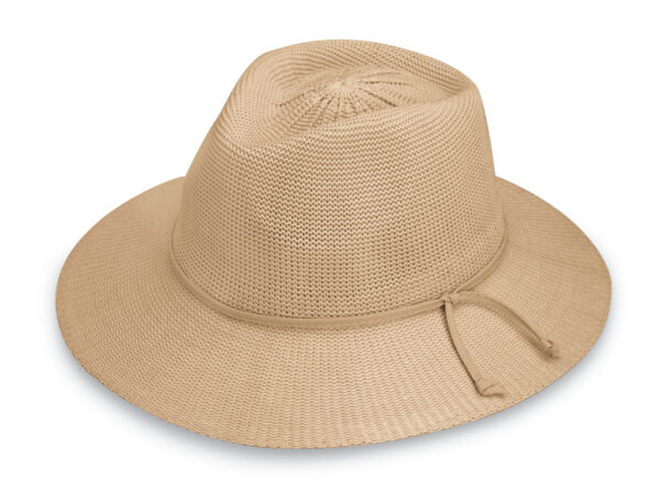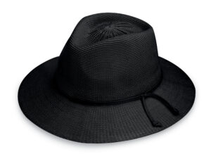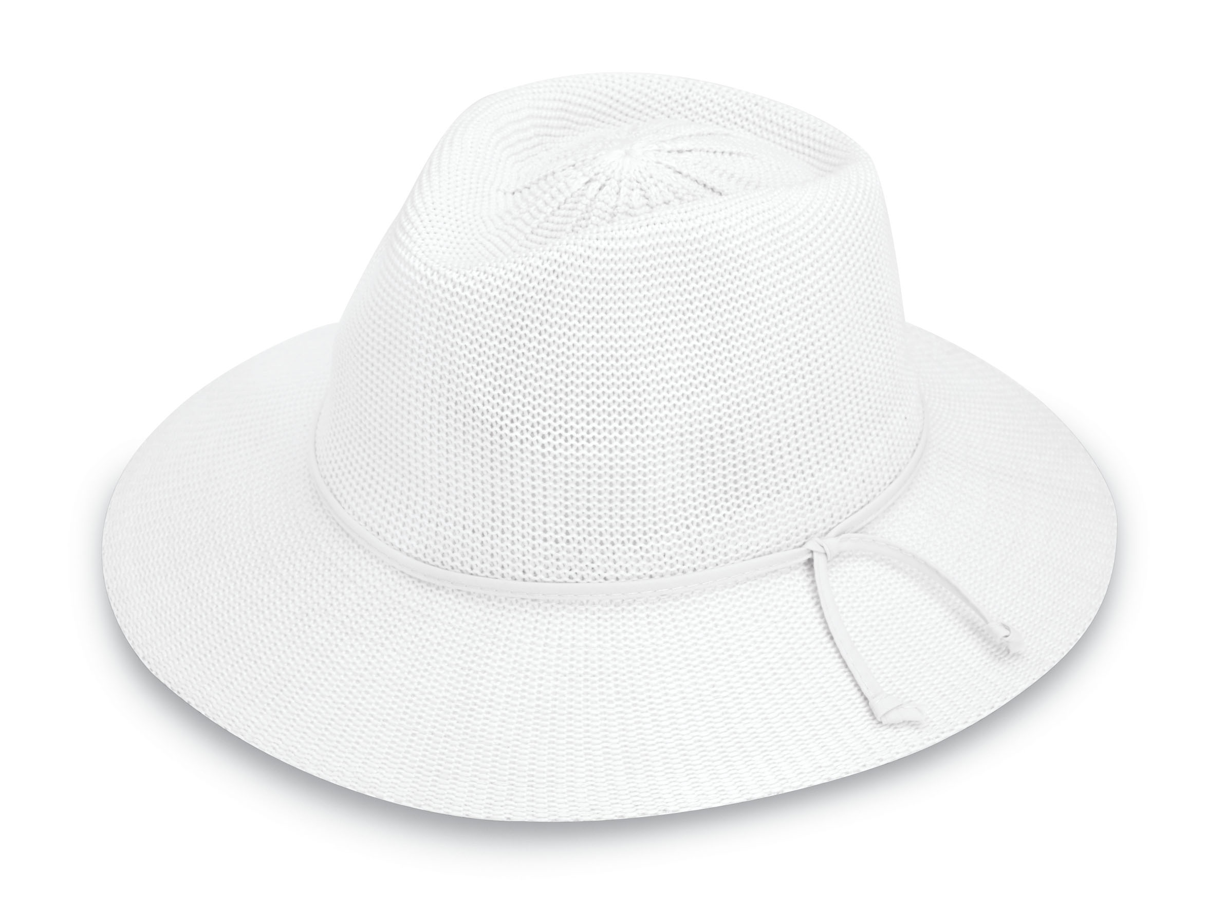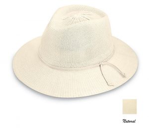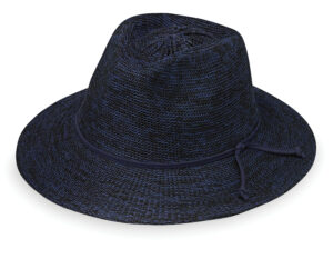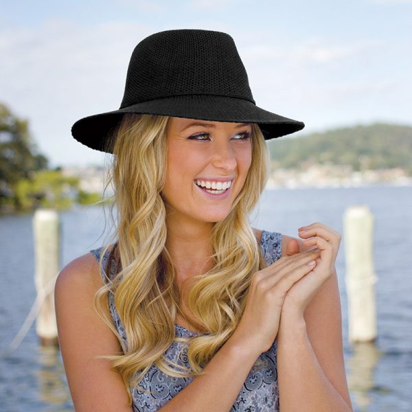 At SunSibility we absolutley love this stylish addition to the Victoria range ! A fashionable and desireable fedora with a 3" brim, matching cord trim and internal drawstring which as most adjusts to fit. 100% poly-straw with cotton lining. Spot clean. Wide Brim Ladies Hat.