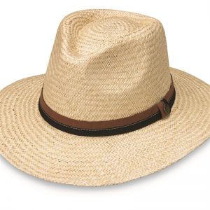 Step out in style in Wallaroo's newest entry to the Wallaroo men's collection. The Byron hat. The sophisticated, structured style in a natural palm fiber weave evokes images of summer adventures. Wide 3' brim shades the sun to keep you cool. Suede and ribbon band surrounds the crown. Internal drawstring for a custom fit. Available in two sizes: M/L (59cm) and L/XL (61cm). 100% palm fiber. Do not wash. Wide Brim Mens Hat.