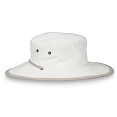 There's no adventure this Explorer hat can't handle. Its wide-brimmed, microfiber style is water repellent, light-weight, crushable and packable. Features a stitched brim, grommets for breathability and a chin strap for windy days. The brim fans from 3" on the sides to 3 1/4" front and back. Contrasting colour on brim and cord add interest. Available in two sizes: M/L (59cm) and L/XL (61cm). 100% microfiber. Handwash cold. Wide Brim Mens Hat
