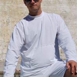 Mens Long Sleeve Round Neck Top with Kangaroo Pocket – UPF 50+